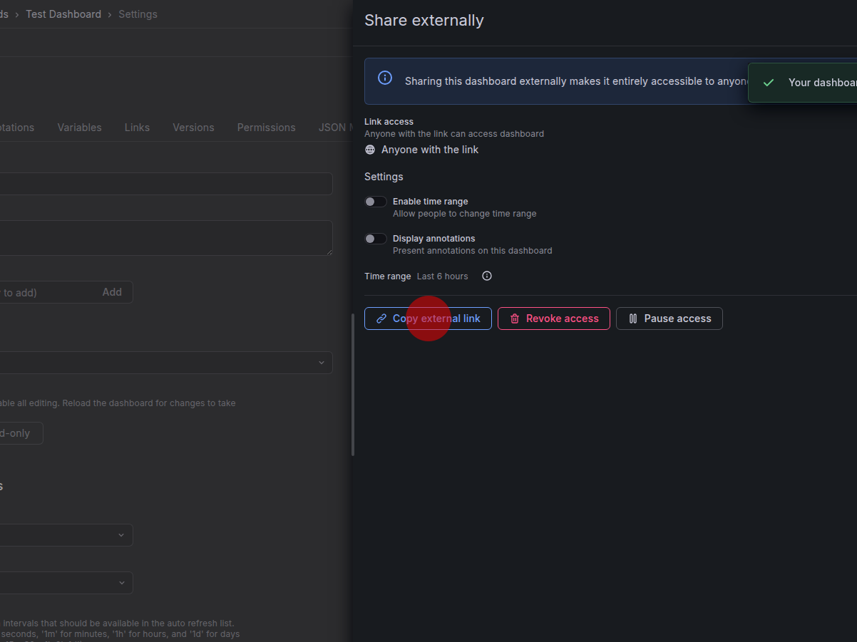 Damit ist das Dashboard für alle Personen einsehbar, die über den externen Link verfügen.